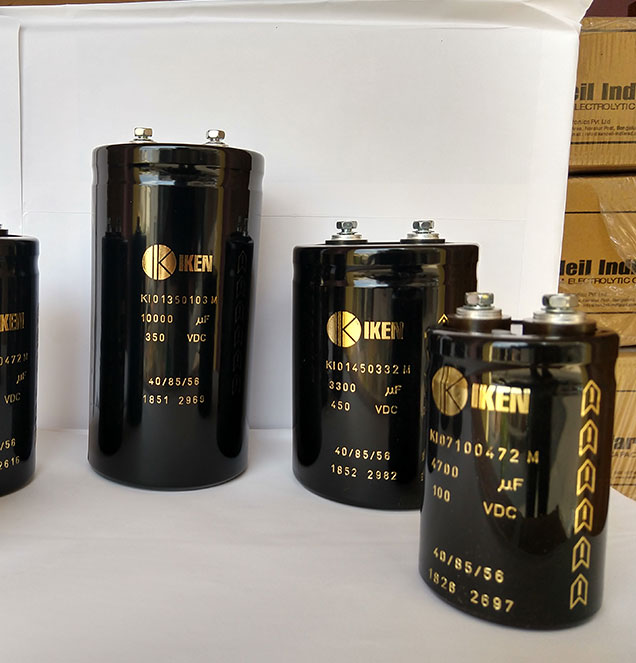 Kendeil is an Italian capacitor manufactured in Bangalore with world class technology. Snap-in, screw terminals, Bottom stud types of capacitors are available in wide range up to 105Deg C, 550VDC, 20000Hrs life.